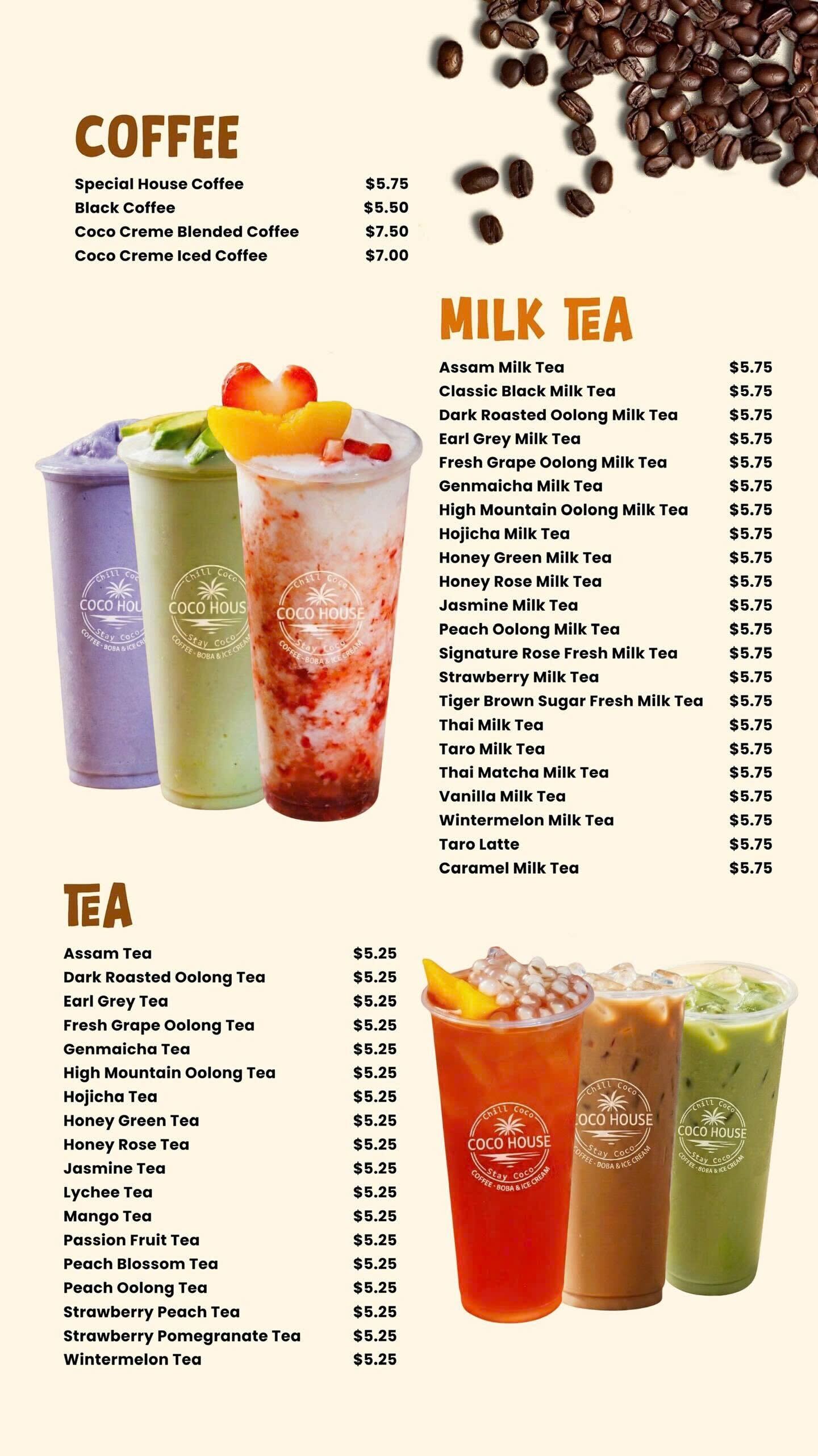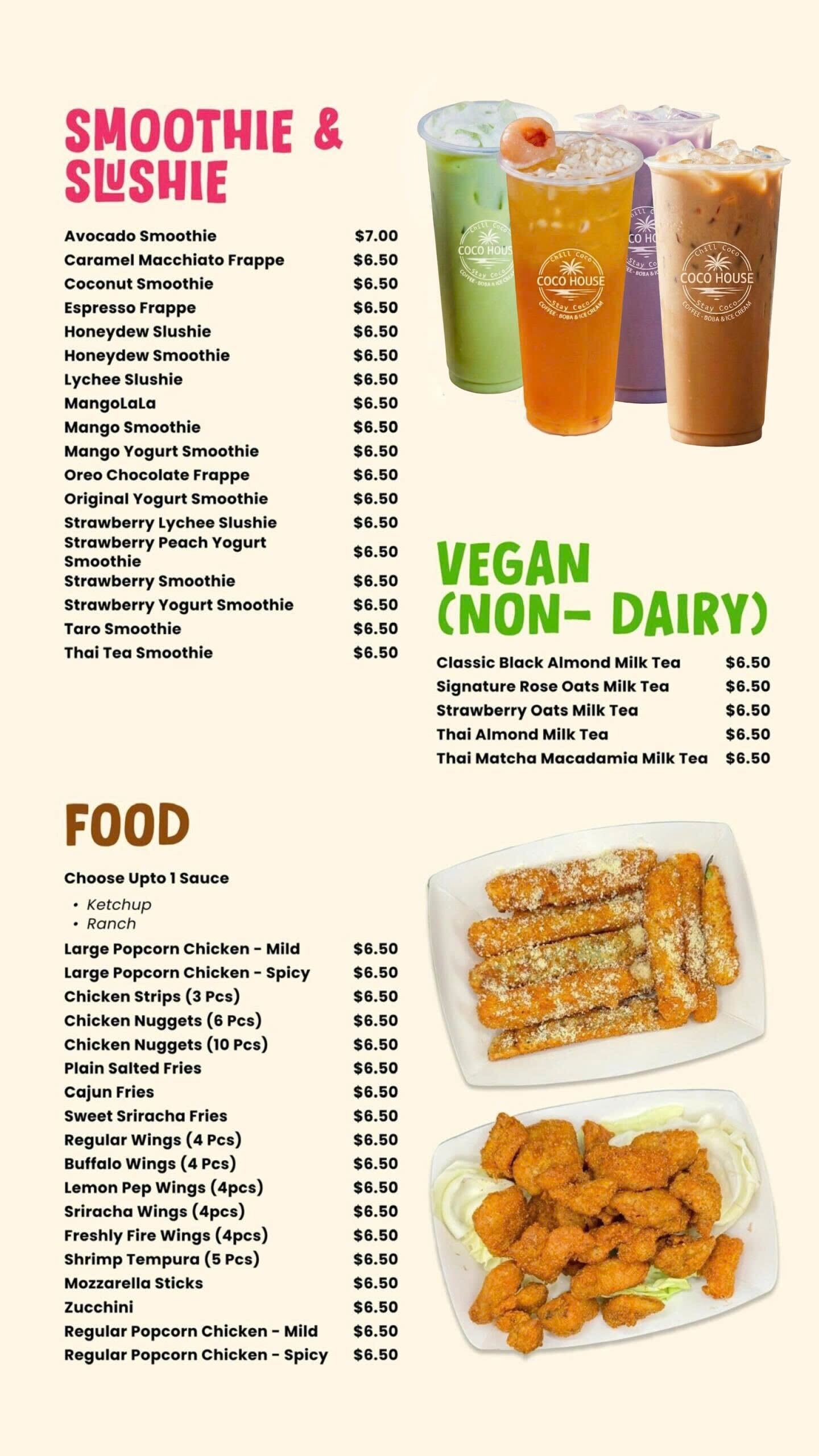 Coco House menu